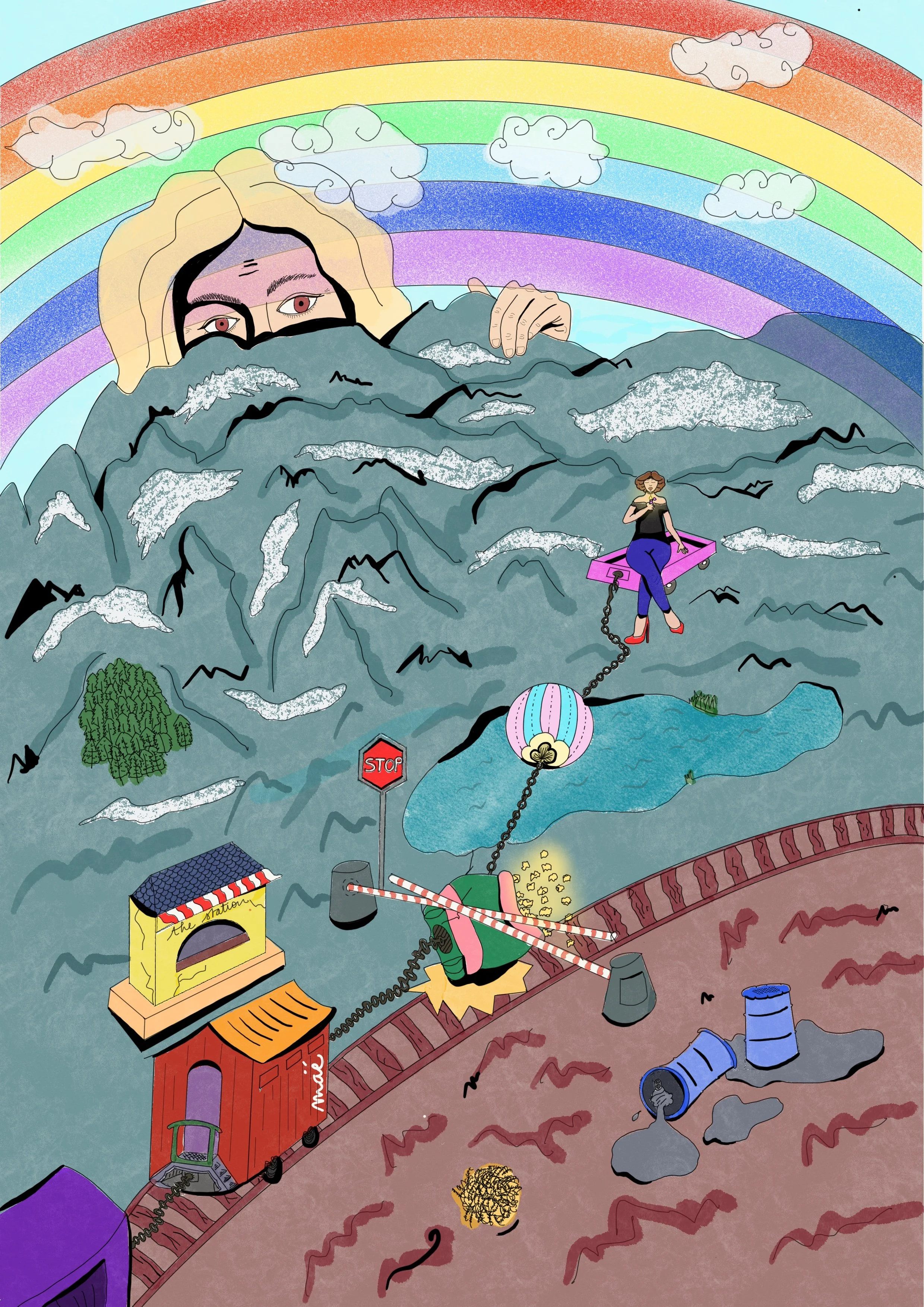 Avec une approche colorée, j’aborde les thèmes de l’onirisme, du mouvement et de la nature.